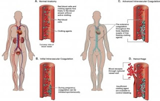 La coagulación intravascular diseminada, o DIC por sus siglas en inglés, es una interrupción seria en el mecanismo de coagulación del cuerpo. Normalmente, el cuerpo forma coágulos de sangre en reacción a una lesión. Con la DIC, el cuerpo produce en exceso muchos pequeños coágulos de sangre a través del cuerpo, mermando los factores de coagulación y las plaquetas del cuerpo. Estos pequeños coágulos son peligrosos y pueden interferir con el suministro sanguíneo a los órganos, causando disfunción e insuficiencia. Puede ocurrir sangrado masivo debido a la falta de factores coagulantes y plaquetas en el cuerpo. La DIC amenaza la vida y necesita tratarse de inmediato.